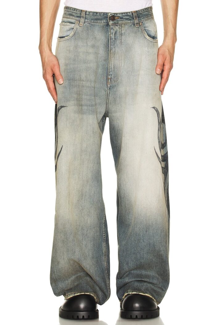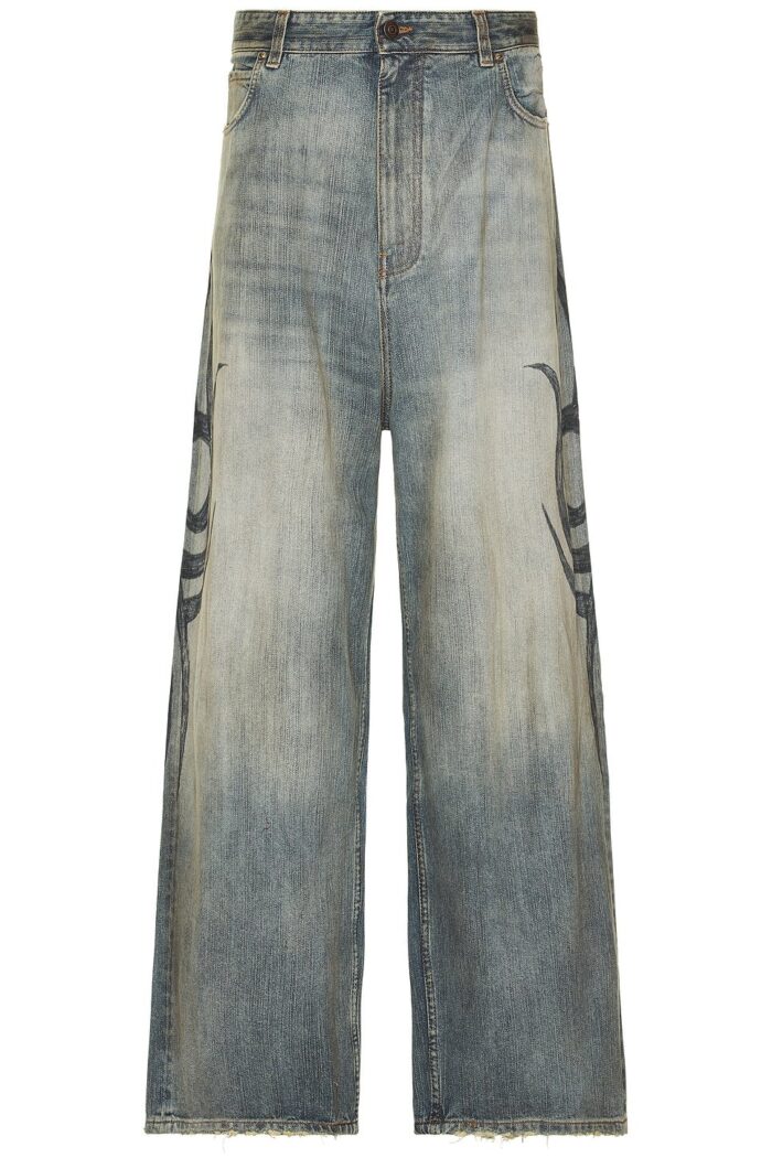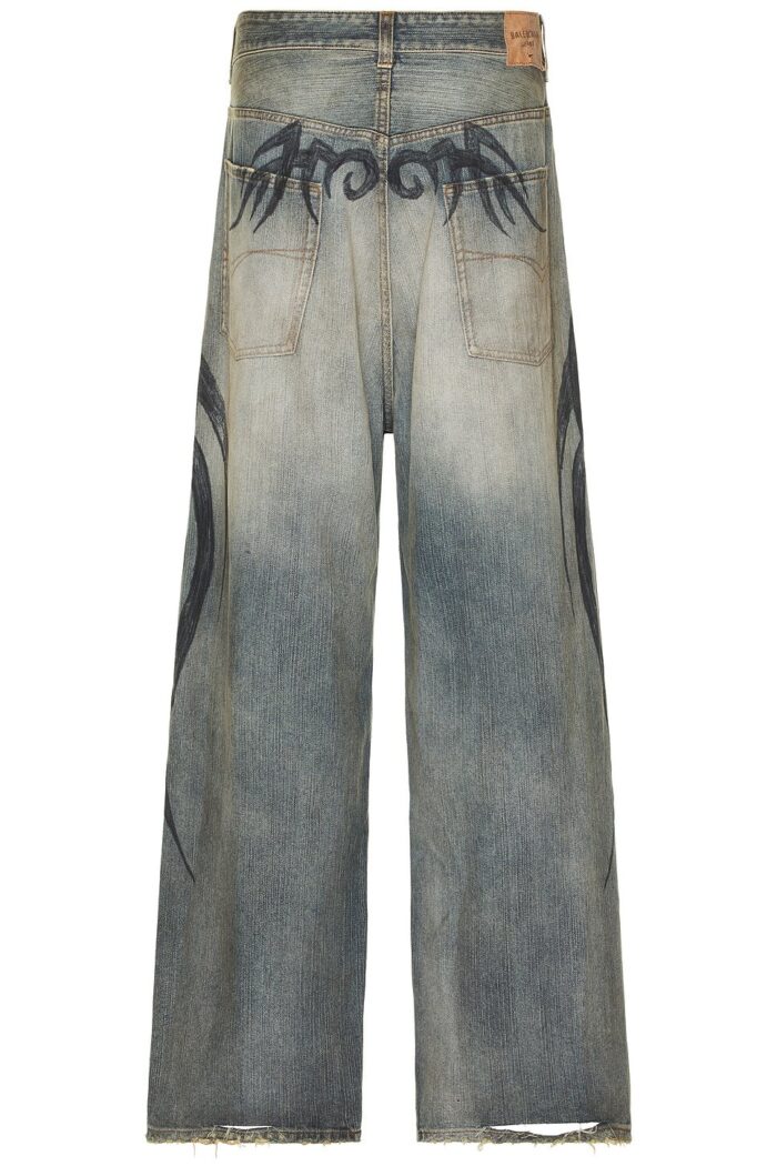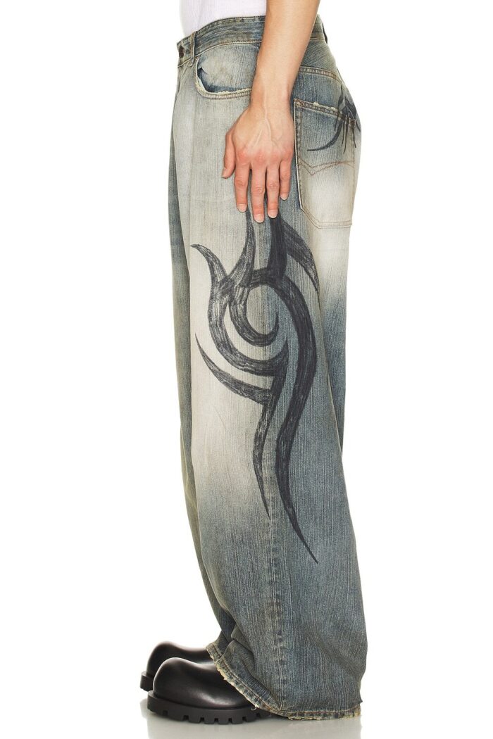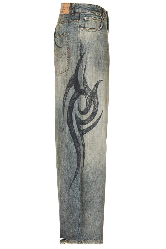 Dashboard rolls in with a raw edge, a faded grey denim built for the bold and unbound. It’s not about subtlety—it’s about statement. With a wide-leg cut, distressed wash, and striking tribal graphics, this piece fuses street grit with fearless style.