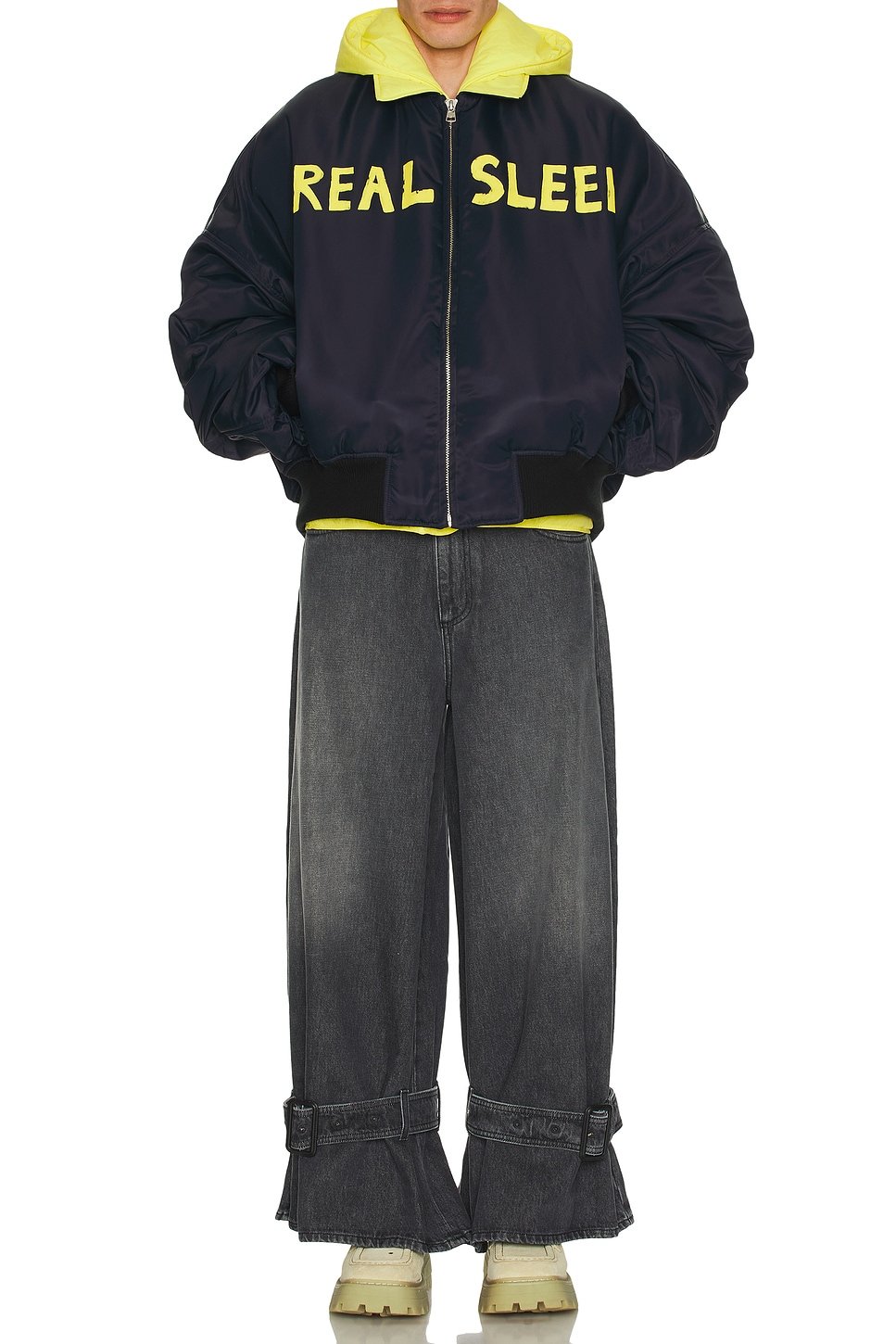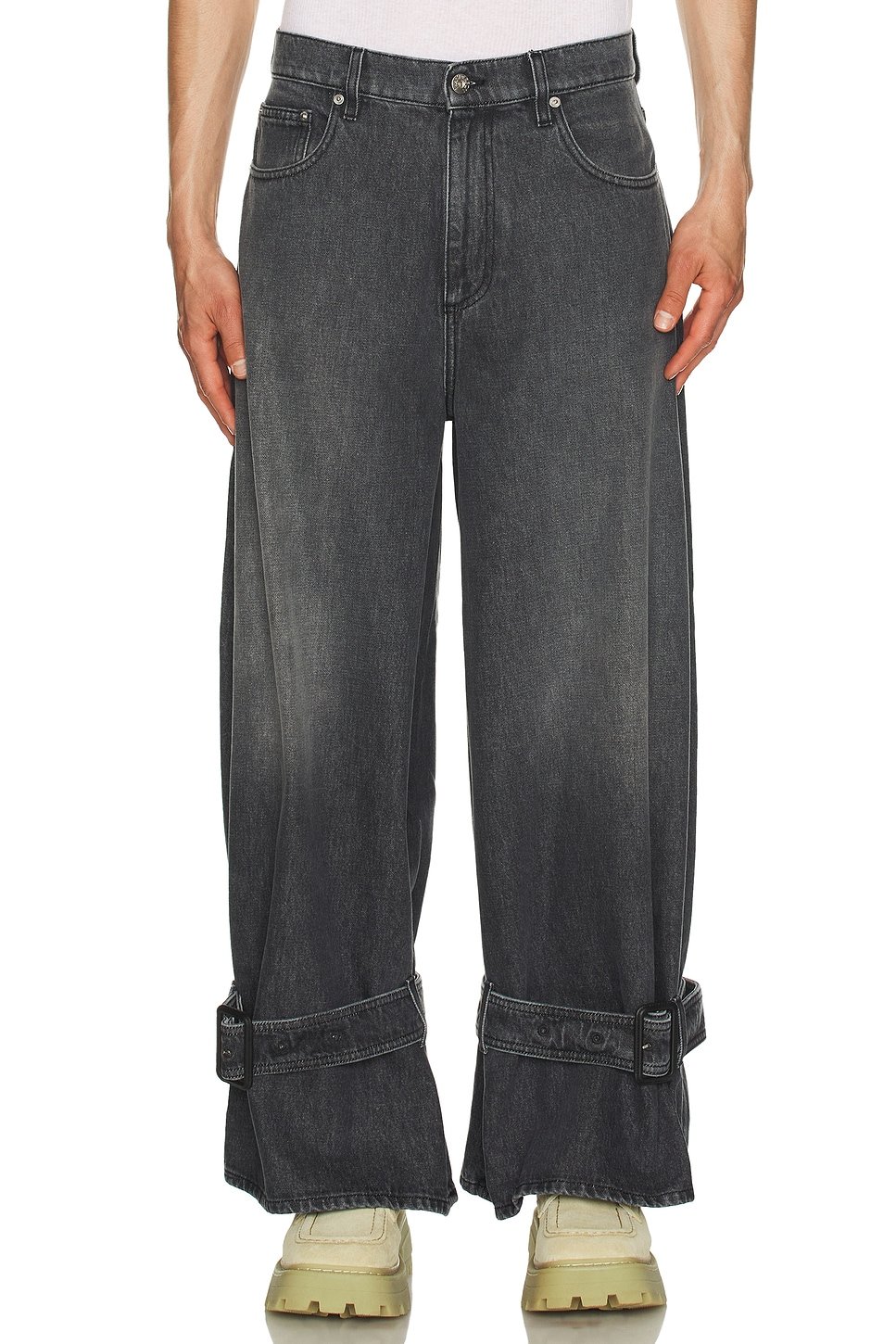 Guna stands firm with quiet authority, a charcoal grey denim crafted for the steadfast. It’s not about noise—it’s about presence. With a wide-leg cut, adjustable ankle straps, and a faded wash, this piece blends rugged utility with sleek control.