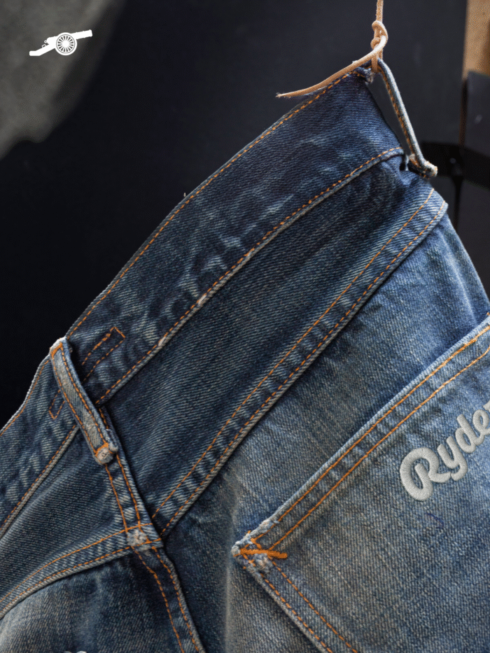 Rayaa’s signature 14.5 oz selvedge denim, crafted with Ironthread™ tech for unmatched durability and fade. Vintage Orbit Wash, hand-finished abrasions, and a tapered fit built to last through every orbit.